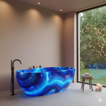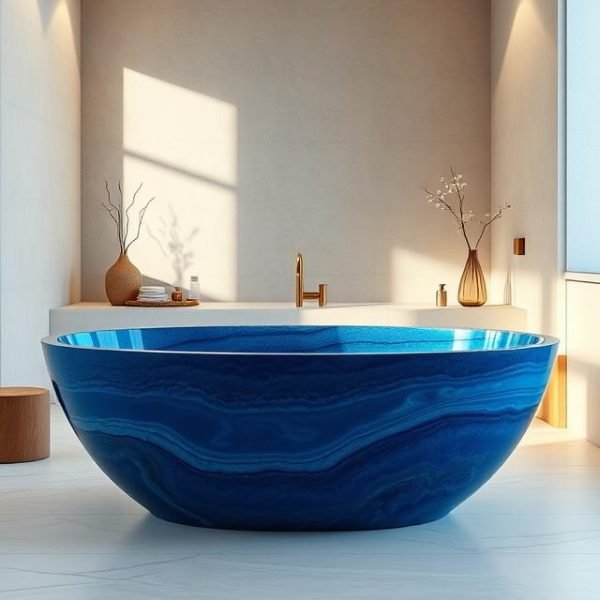 Our Blue Agate Bathtubs are showpieces of craftsmanship and natural beauty. Hand-carved from premium semi-precious Blue Agate stone, these bespoke tubs showcase vivid blue hues, intricate banding, and subtle translucency. They transform ordinary bathrooms into serene spa-like retreats while offering lasting durability and unmatched elegance.