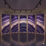 Purple Agate is a semi-precious stone celebrated for its rich violet shades and distinctive concentric banding. Known for its calming aesthetic and natural translucency, Purple Agate becomes especially striking when backlit. Every slab is unique, ensuring your space receives a one-of-a-kind masterpiece that stands out for both colour and pattern.