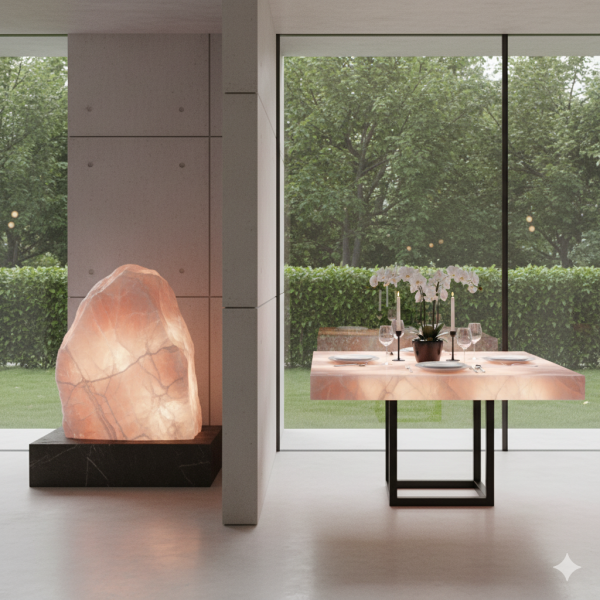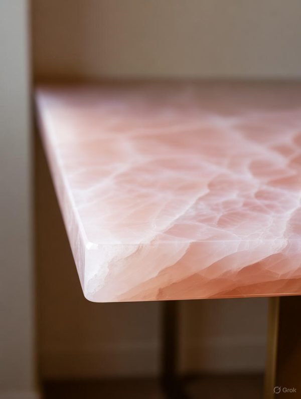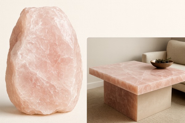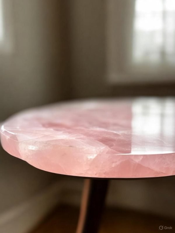 Rose Quartz, known as the “Stone of Love,” is a semi-precious crystal admired for its gentle pink color and luminous depth. Formed over millions of years, it carries unique veining and subtle translucence that make each table top a functional work of art. Its smooth surface and strong composition make it ideal for high-end furniture applications.